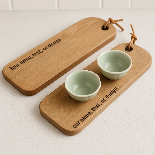 Mini houten snijplank rechthoekig – Personaliseerbaar - Hangbaar serveer- en tapasplankje