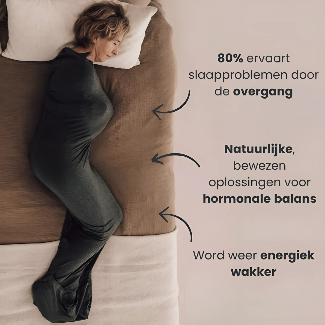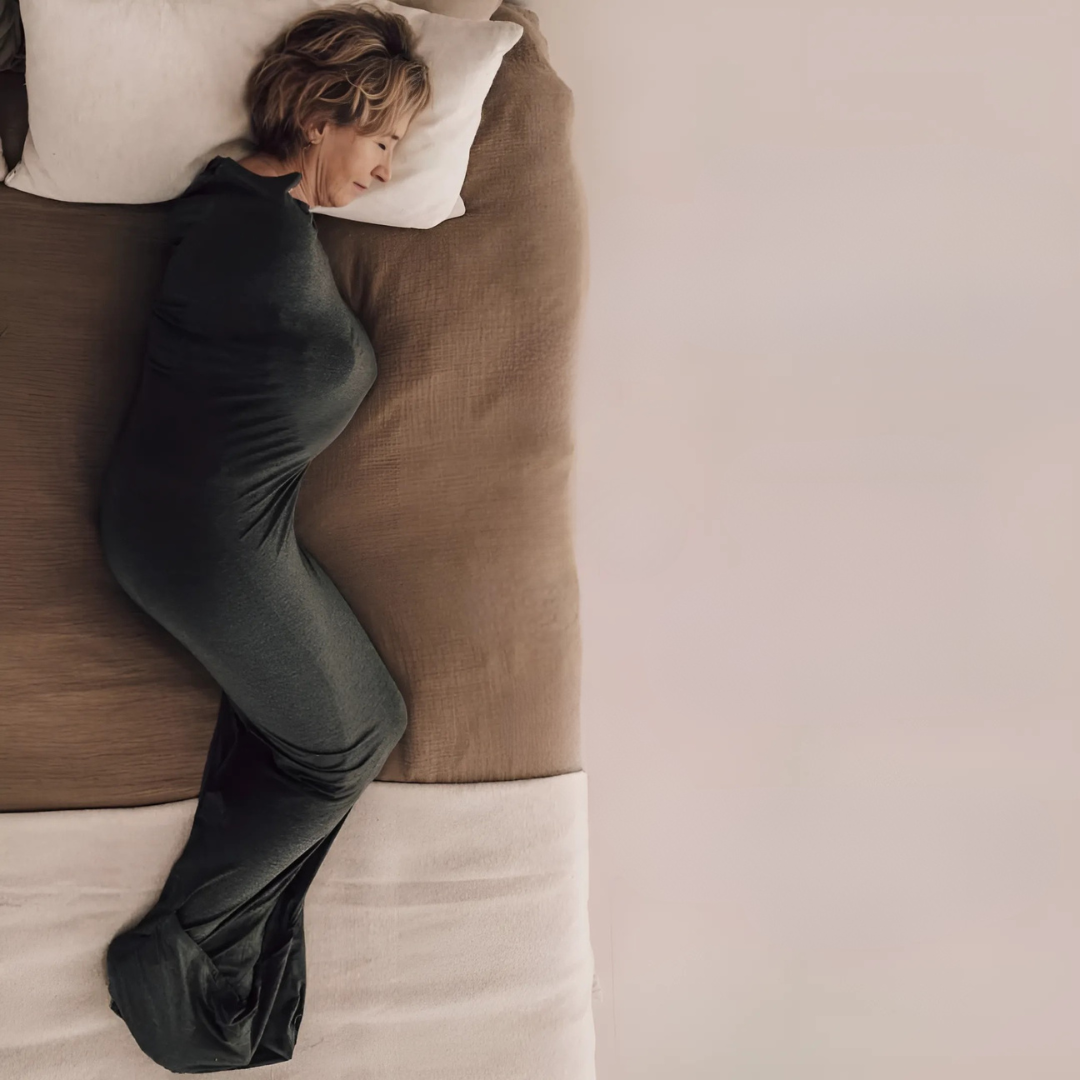 De Calmora is jouw oplossing voor rust in de nacht tijdens de overgang. Terwijl je lichaam al genoeg veranderingen doormaakt, biedt de Calmora zachte, constante compressie over je hele lijf die je zenuwstelsel kalmeert en helpt om sneller in slaap te vallen en door te slapen — zonder dat je wakker wordt van hitte of overmatig zweten.