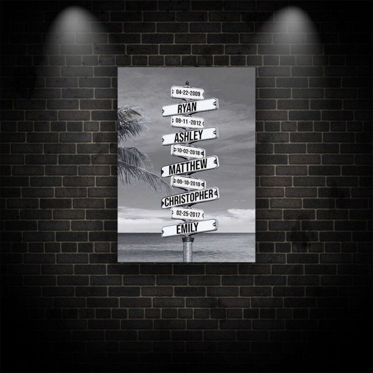 RetroRoots Family Art | Personaliseerbaar Canvas Kunst met Namen en Geboortedata – Uniek Retro Straatnaambordontwerp