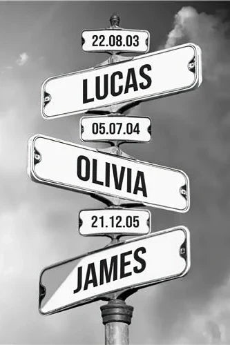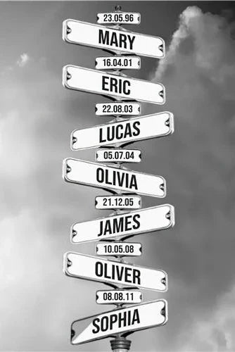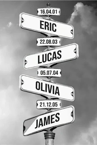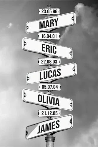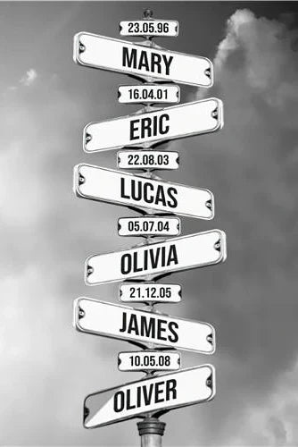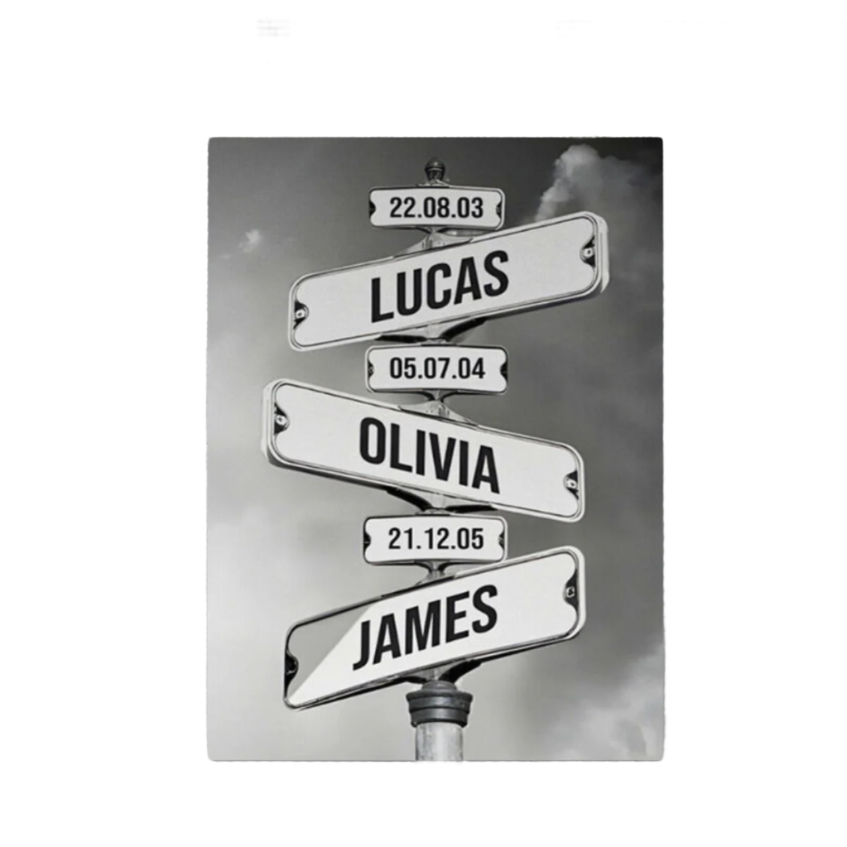 Breng je gezin dichterbij met de RetroRoots Family Art, een uniek kunstwerk dat volledig te personaliseren is met de namen en geboortedata van jouw dierbaren. Het retro straatnaambordontwerp voegt een nostalgisch en stijlvol tintje toe aan je interieur, perfect voor het opfleuren van je huis of als bijzonder cadeau voor een geliefde.